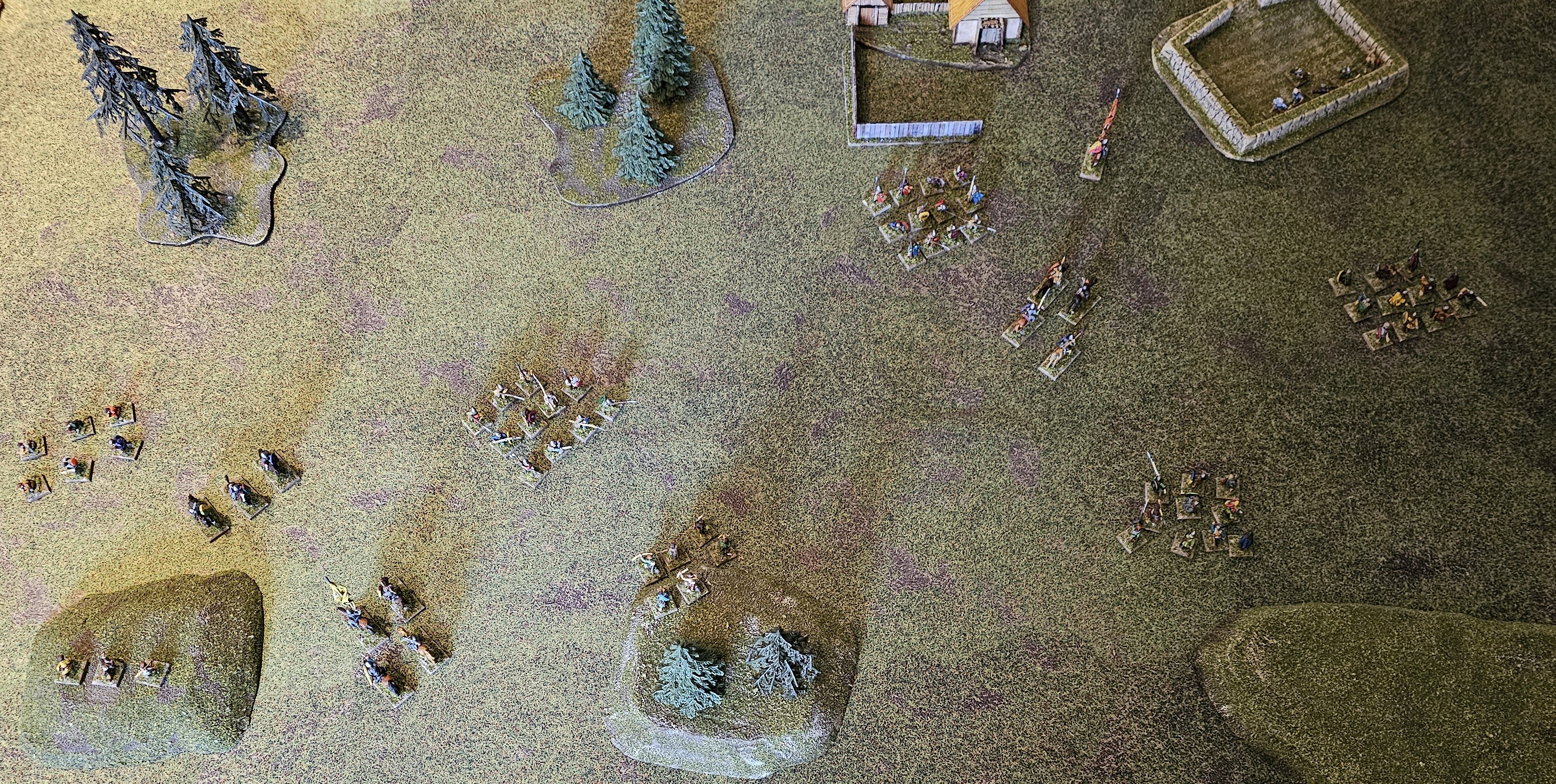 This was the first time using support. I spent two points and managed to roll the same result twice, so a single mob was unaware at the start of the game and would slowly become aware over a few turns, unless attacked or approached too closely. I had the choice, so I picked the archers, because I figured dealing with melee troops first would be to my benefit. Mostly that worked. The halberdiers were fairly easy to kill thanks to good to-hit rolls. The assassins got in too quickly and started dropping my troops. Their poisoned knives meant rolling twice for damage so A Team lost three soldiers in two rounds, before Tarquin dropped the last one.
