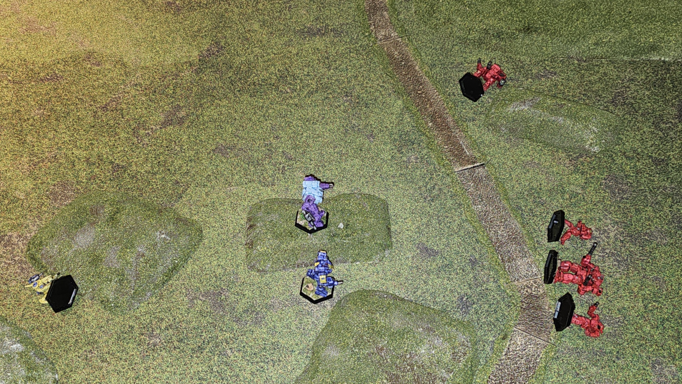 The warriors conferred. One who was larger and more decoratively attired nodded to the others.