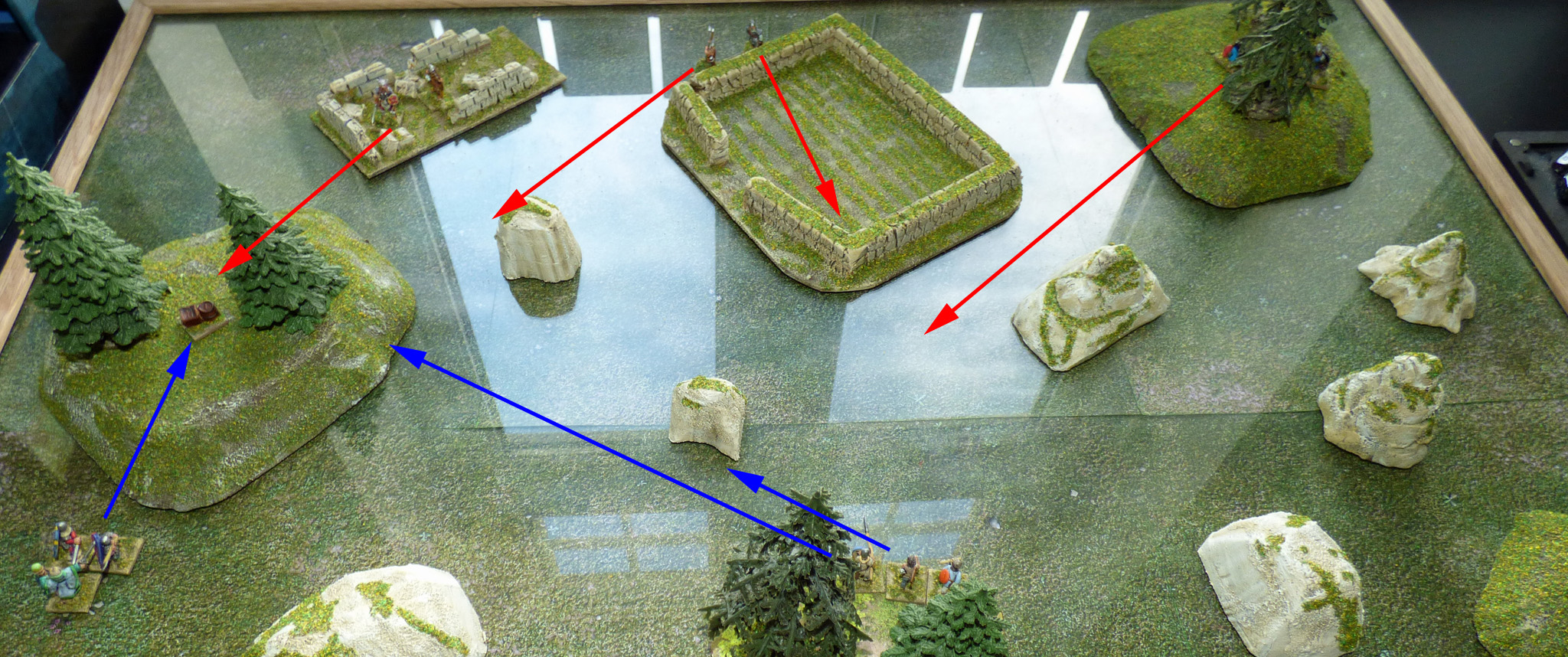 The village elder had told the Lemmings that she had heard that the bandits were massing in the wooded hills to the north, near the ruins of an old farm. Her intelligence proved accurate and the Thrappled Lemmings were soon moving stealthily from cover to cover as they tried to sneak up on the grim-faced Hooded Men they could see just ahead.